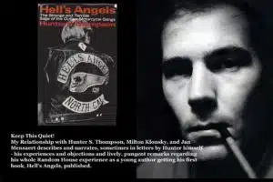 The Hell’s Angels Letters is a unique combination: at the center is Hunter Thompson’s letters to his contact person at Random House as his bestseller Hell’s Angels comes into being. (That contact continues thereafter.) Beside this is the admiring and excited perspective of that beautiful young woman at Random House, who then changes course to set off on some adventures of her own. (She turns out to be very interesting and deep in her own way, becoming more complex as she matures.) Interwoven is a history of the times, from literary and political perspectives, with a cast of characters from then. Plus interviews and short articles by authorities exploring Hunter Thompson’s legacy. Photographs. And witty cartoons.